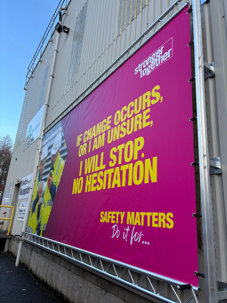 This installation is a great example of how the right display system can modernise site signage without compromising on safety or reliability. For businesses regularly updating large-format banners, solutions like this offer a smarter way forward – reducing risk, saving time, and making display changes effortless.