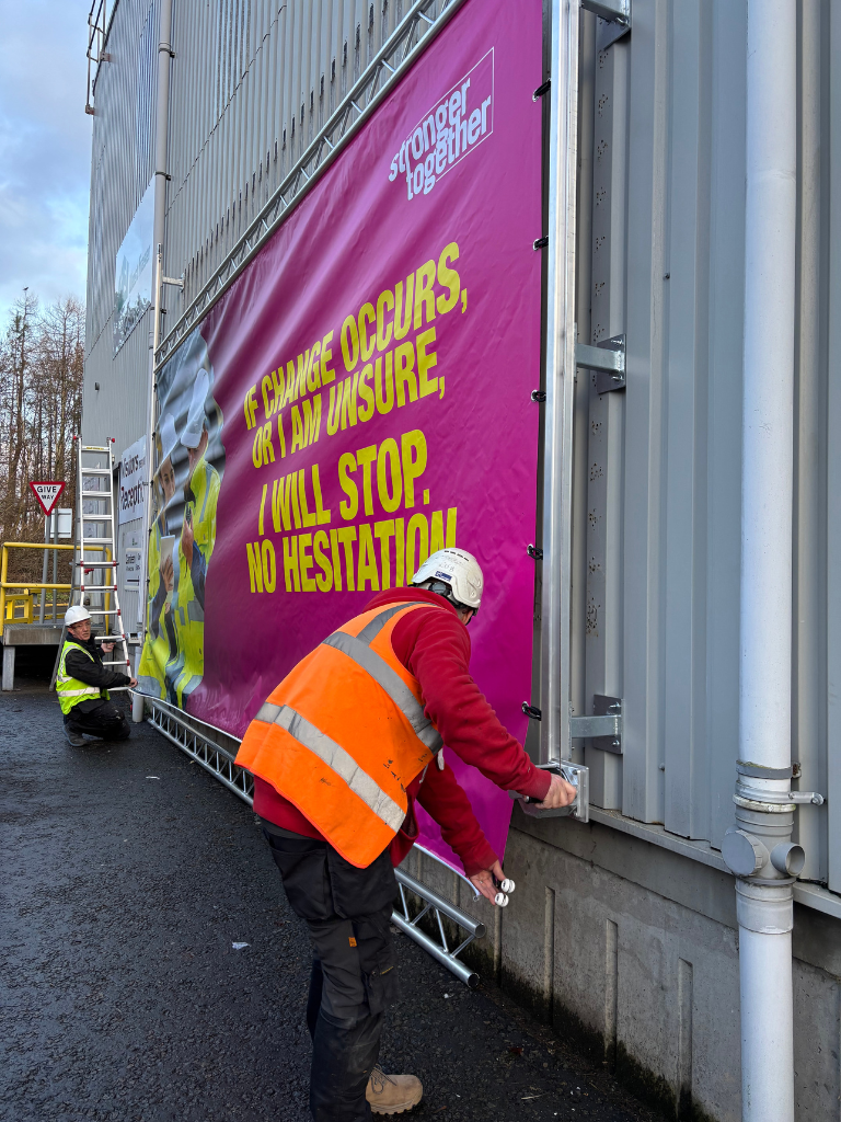 West Fraser required a safer, faster way to change multiple large-format banners across their site in Scotland. Each banner measured an imposing 6m x 3m, and the existing process relied on scissor lifts, extended labour time, and working at height – introducing ongoing health & safety risks and operational inefficiencies.