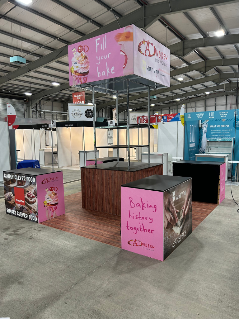 By combining thoughtful design with high-impact large format graphics, the stand successfully reflected the strength of the Andrew Ingredients brand while showcasing their product range in a clear and engaging way.