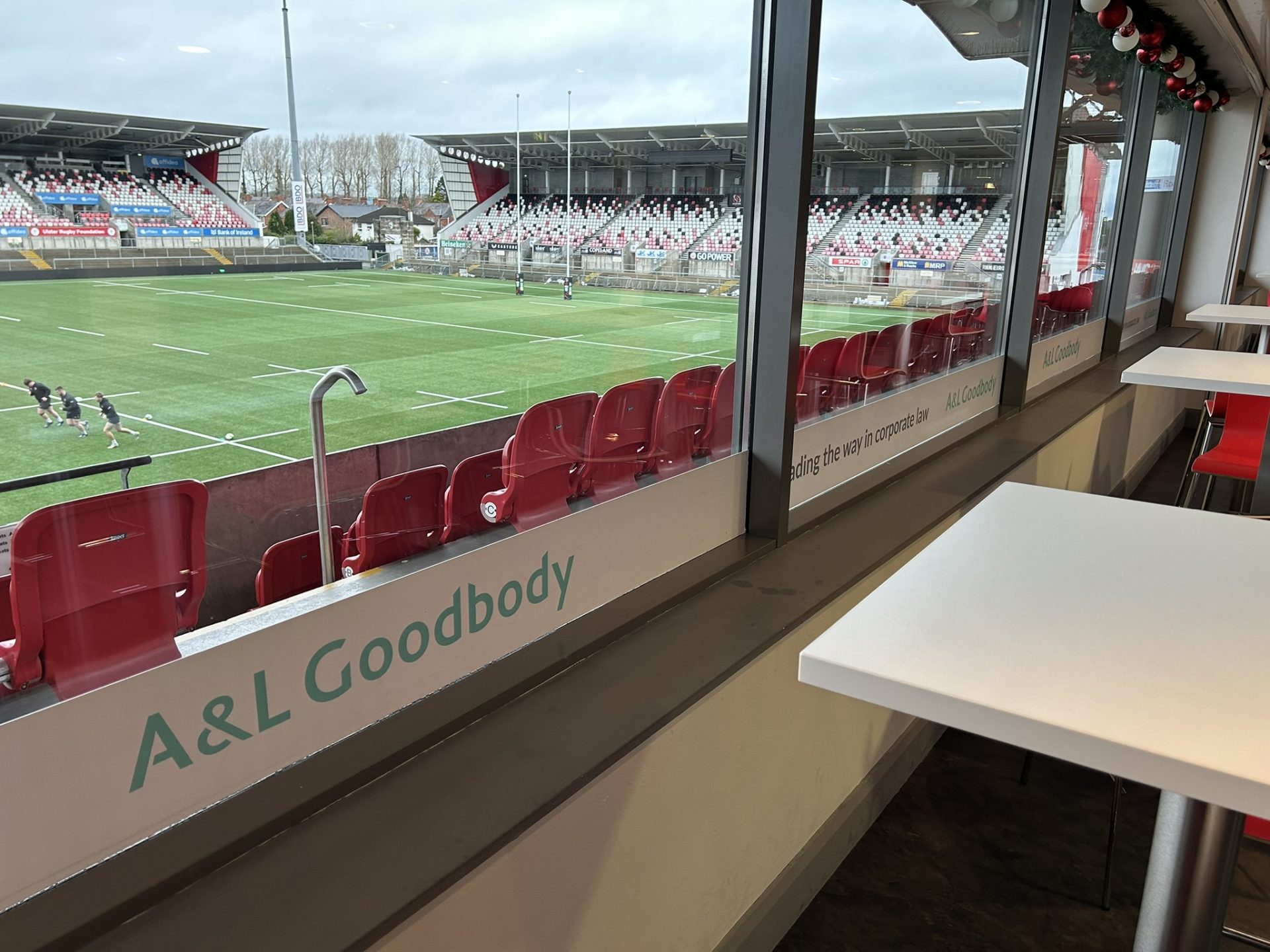 The refreshed lounge now offers an elevated experience for visitors, showcasing the strength of the A&L Goodbody and Ulster Rugby partnership. The final environment is bold yet refined, with each branded element working together to create a welcoming, modern, and unmistakably premium space.