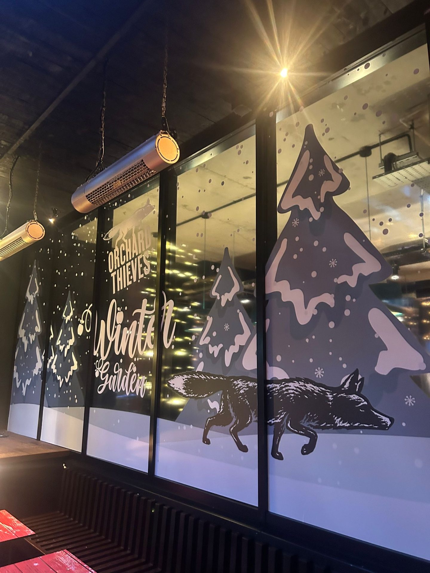 The completed installation blended soft lighting, illustrated winter scenery, and warm textures to create an immersive seasonal atmosphere. It’s a strong example of how brands can use print, texture, and space to build atmosphere, encourage customer engagement, and leave a lasting impression.