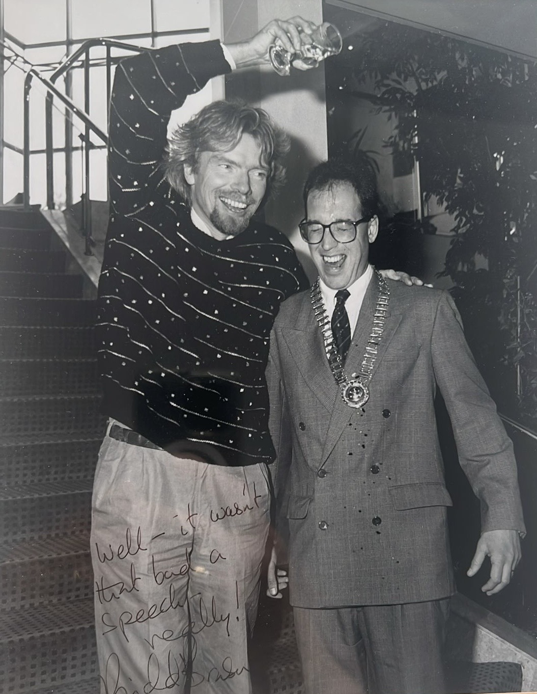 Stephen Boyd, our Managing Director, served as Chair of PANI in 1990 – a role that remains a valued part of our company’s history. Past Chairs receive a distinctive PANI pin, traditionally worn on the lapel at industry events. Seeing Stephen wearing his pin on the night was a reminder of the long-standing relationship between our business and the wider advertising community in Northern Ireland. See image below of Stephen at the 1990 PANI luncheon, with Sir Richard Branson, the guest speaker.